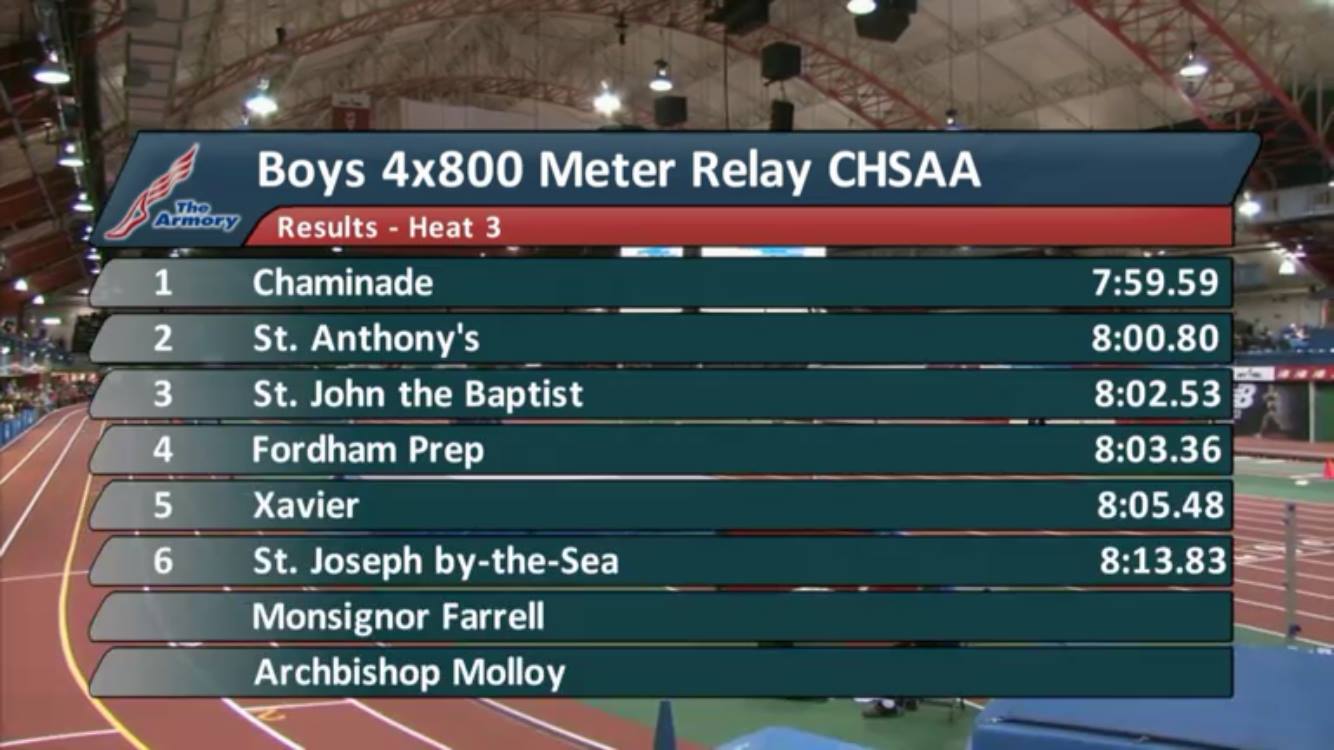 | 4x200 "B" | 8. Fordham Prep | 1:33.36 FAT | ||