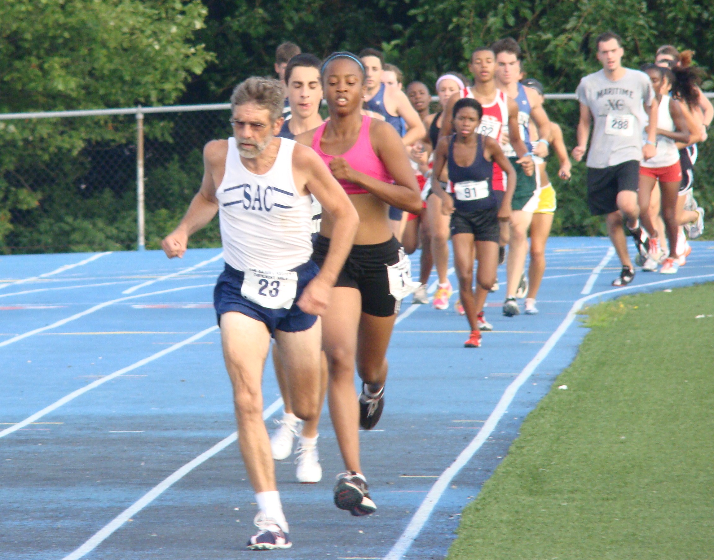 | Leading the cheers was Shore AC's Harold Nolan who came in from South Jersey. At 61 years old, he is one of the nation's best masters athletes. |