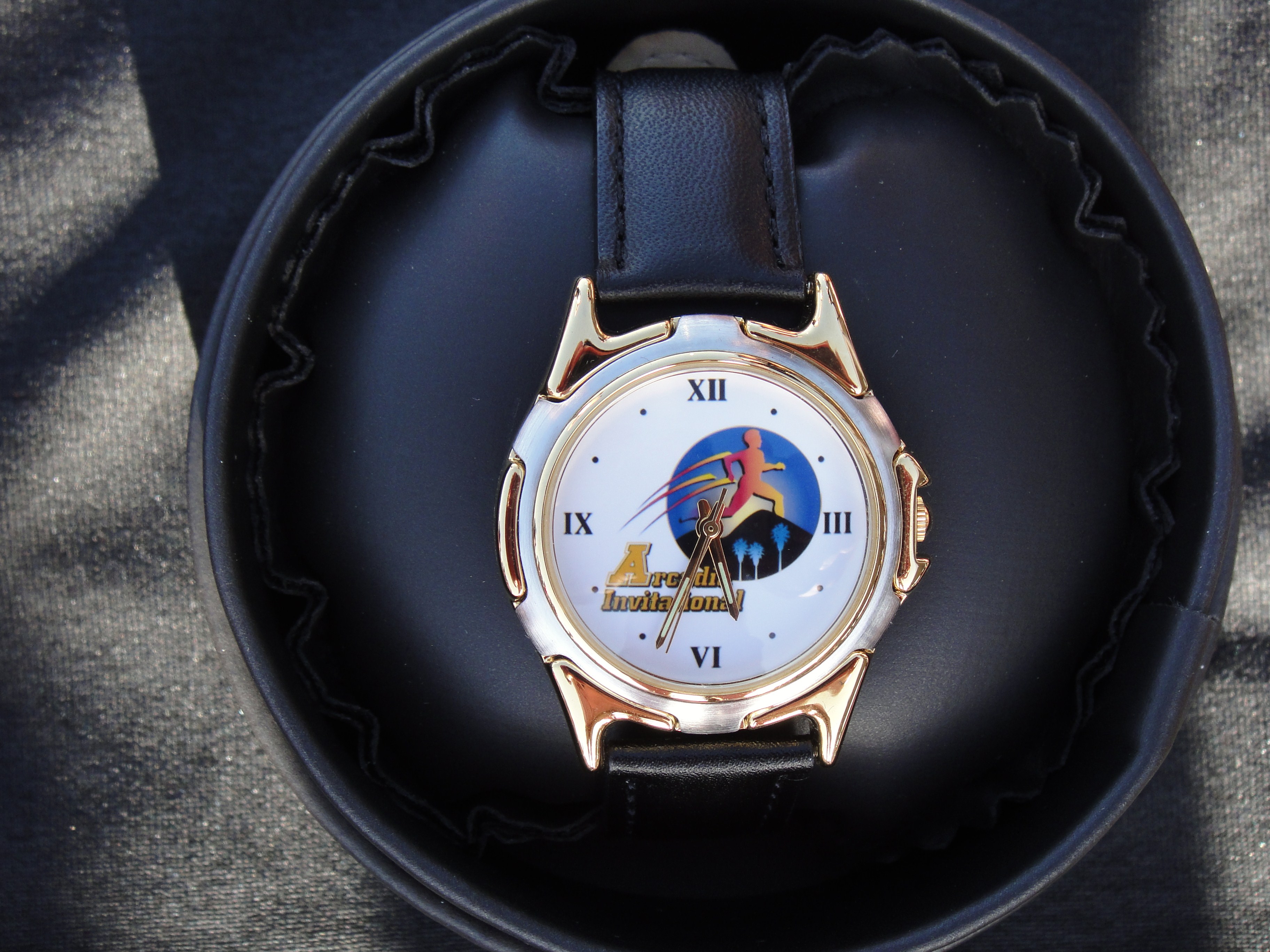 The winners received a gold medal, gold watch and custom T-Shirt A close-up of the gold watch |