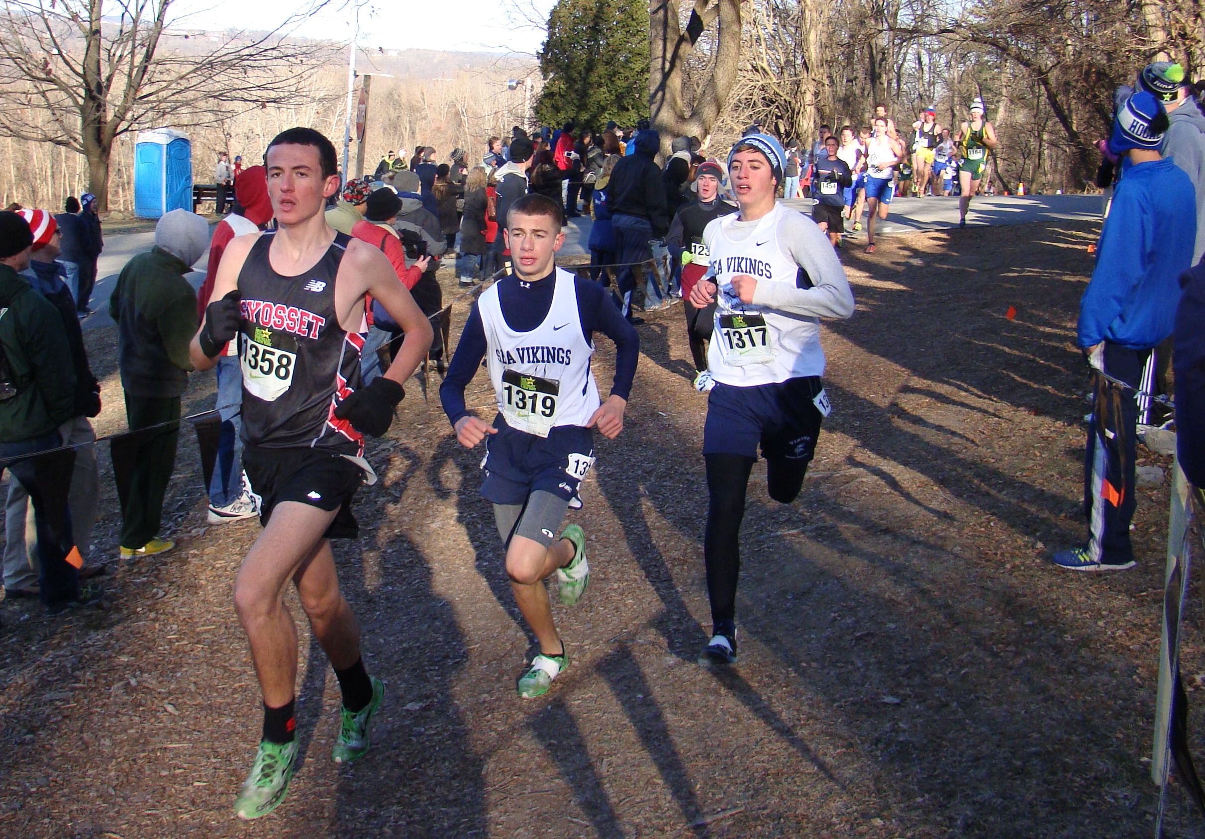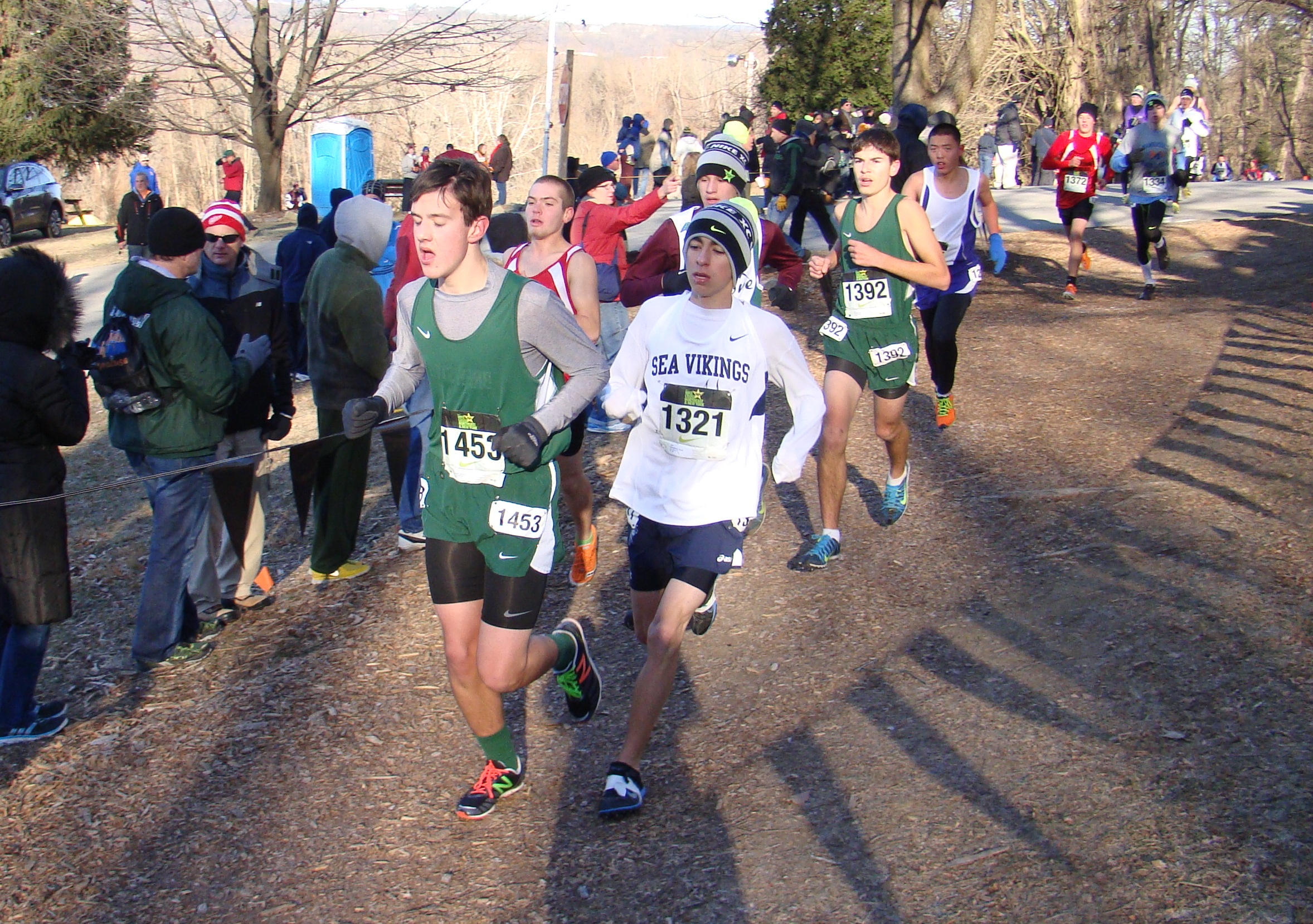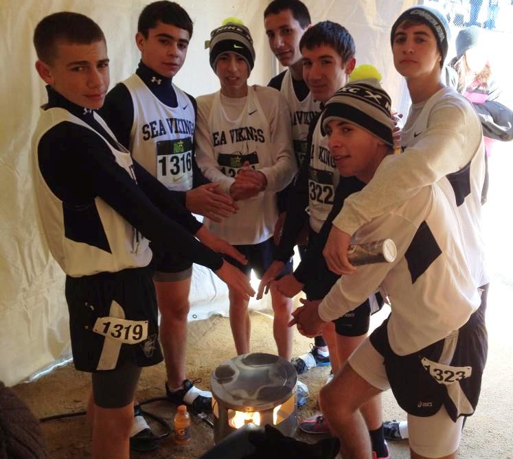 - Bowdoin Park Senior Nick D'Addesa rebounds and leads the team in the season finale. A nice effort by "Sea Viking XC" as the team returns 6/7 athletes for XC 2014. The temperature was a bone chilling 17 degrees at race time. Overall it was a nice weekend for the team. This concludes XC 2013. ![]() Sea Vikings XC try to warmup after the race - The race time temp was 17 degrees! |